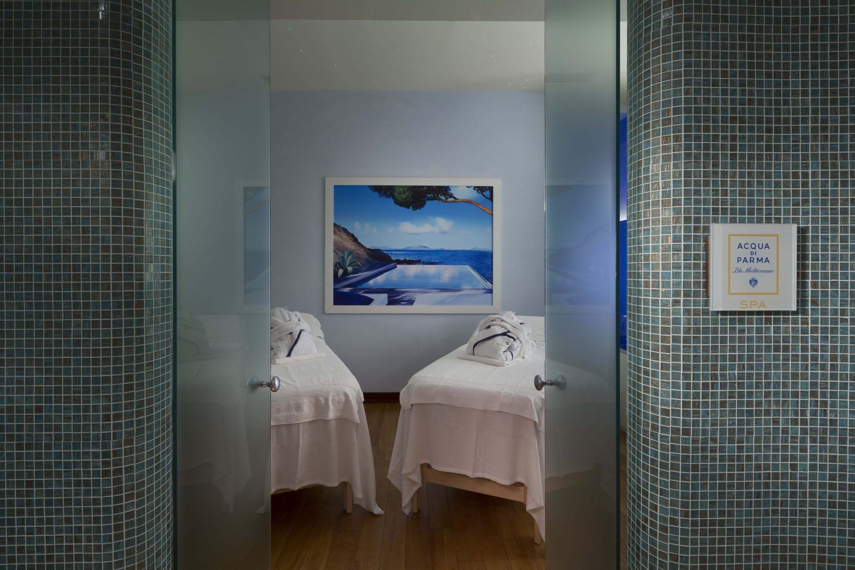 Acqua di Parma danas je suvremen lifestyle brend, duboko ukorijenjen u tradiciju talijanske zanatske proizvodnje. Svojim kupcima, osim elegantnih, pročišćenih i bezvremenskih mirisa, pruža neponovljiva iskustva i jedinstvene lokacije. Na tragu te ideje, 2008. otvoren je prvi Blu Mediterraneo SPA u ekskluzivnom talijanskom ljetovalištu Porto Cervo, a zatim je 2013. uslijedio i onaj u Veneciji, unutar hotela Gritti Palace, još jednog kultnog mjesta velike povijesne tradicije i omiljenog odredišta razmaženih putnika iz cijelog svijeta.