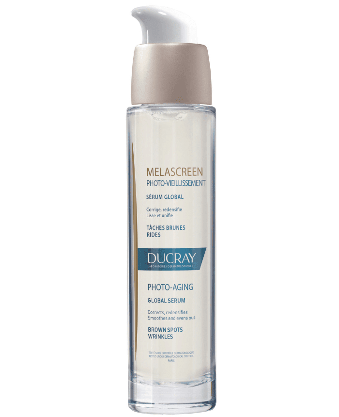 Melascreen PHOTO-AGING GLOBAL serum namijenjen je njezi kože koja ubrzano stari zbog izloženosti suncu te prvenstveno djeluje na znakove starenja uzrokovane izlaganjem UV zračenju – poput lokaliziranih tamnih mrlja, staračkih pjega, bora i gubitka čvrstoće.