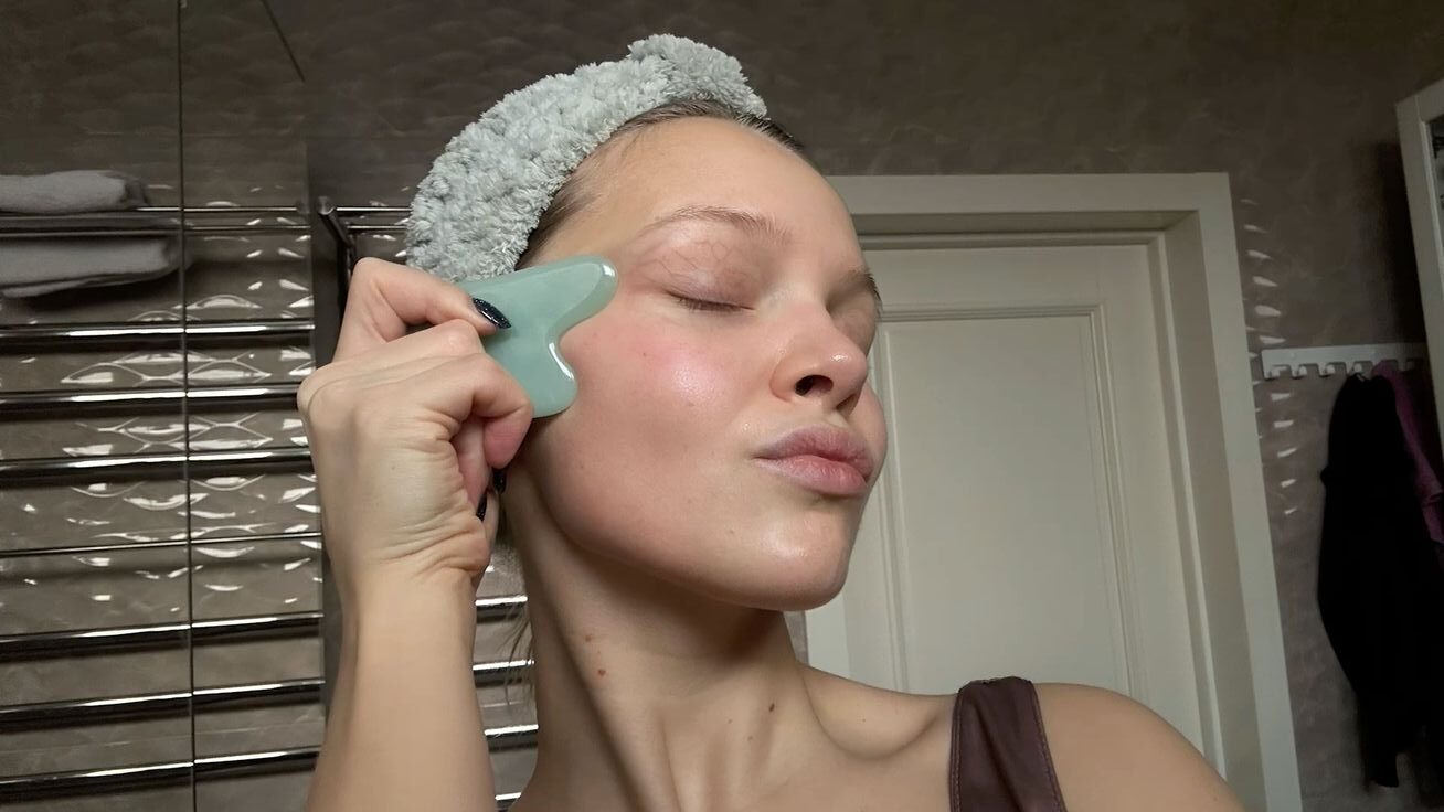 Gua sha kamen nježno povlačite udubljenjem od ramena prema vratu. Kad dođete do područja iza uha, kružno masirajte u mjestu. Istim pokretima udubljenja u kamenu prelazite rubove od sredine brade do obraza, zatim od nosa do sljepoočnica. Ponovno u mjestu masirajte najviše točke. Okrenite kamen pa ravnim rubom lagano povlačite od korijena nosa do vlasišta, po sredini i sa svake strane. Po želji nanesite ostatak njege. Gua sha operite u mlakoj vodi i pospremite za buduću upotrebu. Za rashlađujući učinak, kamen prije masaže ohladite u hladnjaku.