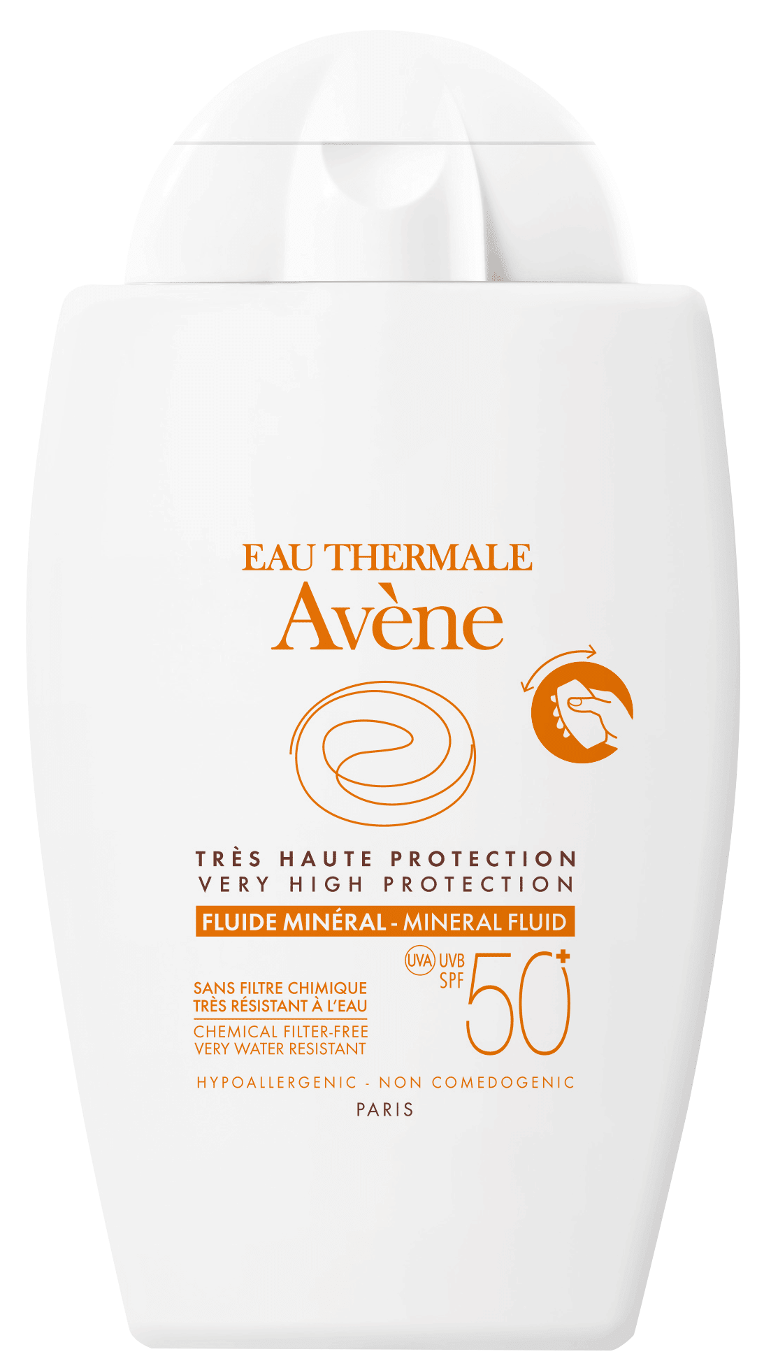 S obzirom na to da je Eau Thermale Avène brend koji je jako „brižan“ prema iznimno osjetljivoj te netolerantnoj i alergijama sklonoj koži, tako su na nju mislili i kad je riječ o zaštiti od sunca. Mineralni fluid za zaštitu od sunca SPF 50+ štiti kožu koja je netolerantna na kemijske filtre i parfeme.