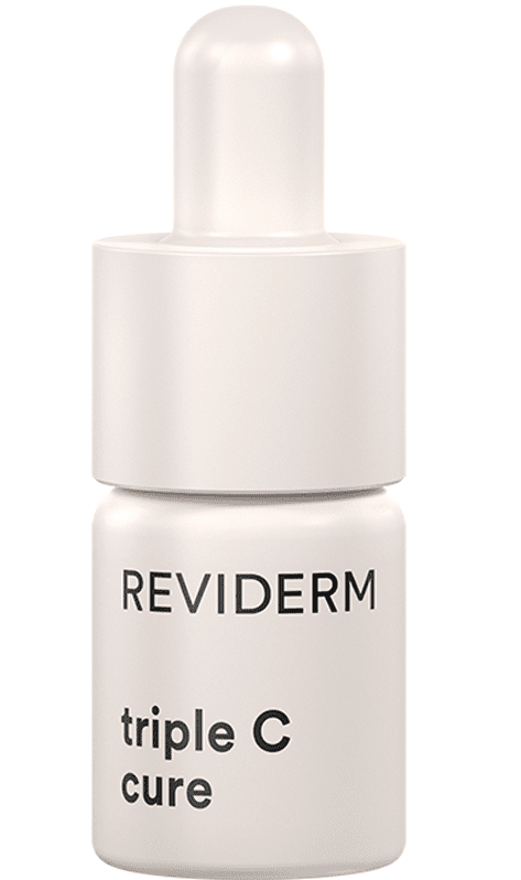 Visokokoncentrirana doza vitamina C u Reviderm Triple C Cure vitaminskoj kuri učvršćuje konture, balansira ten i djeluje zajedno s antioksidansom OPC kao dvostruka zaštita od prijevremenog starenja. Pruža snažan efekt liftinga i djeluje protiv nastanka budućih bora – aktiviranjem sinteze kolagena ovaj će tretman u samo 21 dan vidno pomladiti lice i popuniti njegove konture.