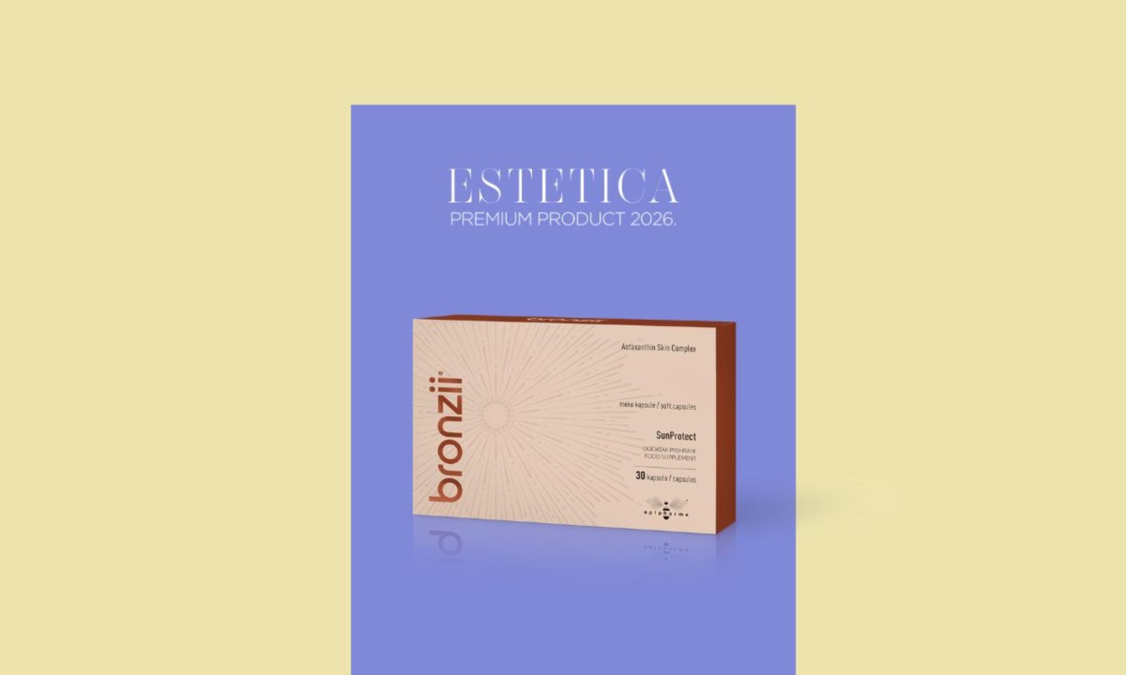 Ovaj dodatak prehrani osmišljen za pružanje potpore koži prije, tijekom i nakon izlaganja suncu. Kombinacija astaksantina, antioksidansa, biljnih ekstrakata, vitamina i minerala djeluje sinergijski u zaštiti kože od oksidativnog stresa, doprinosi normalnoj pigmentaciji te pomaže u očuvanju ujednačenog tena, elastičnosti i hidratacije.