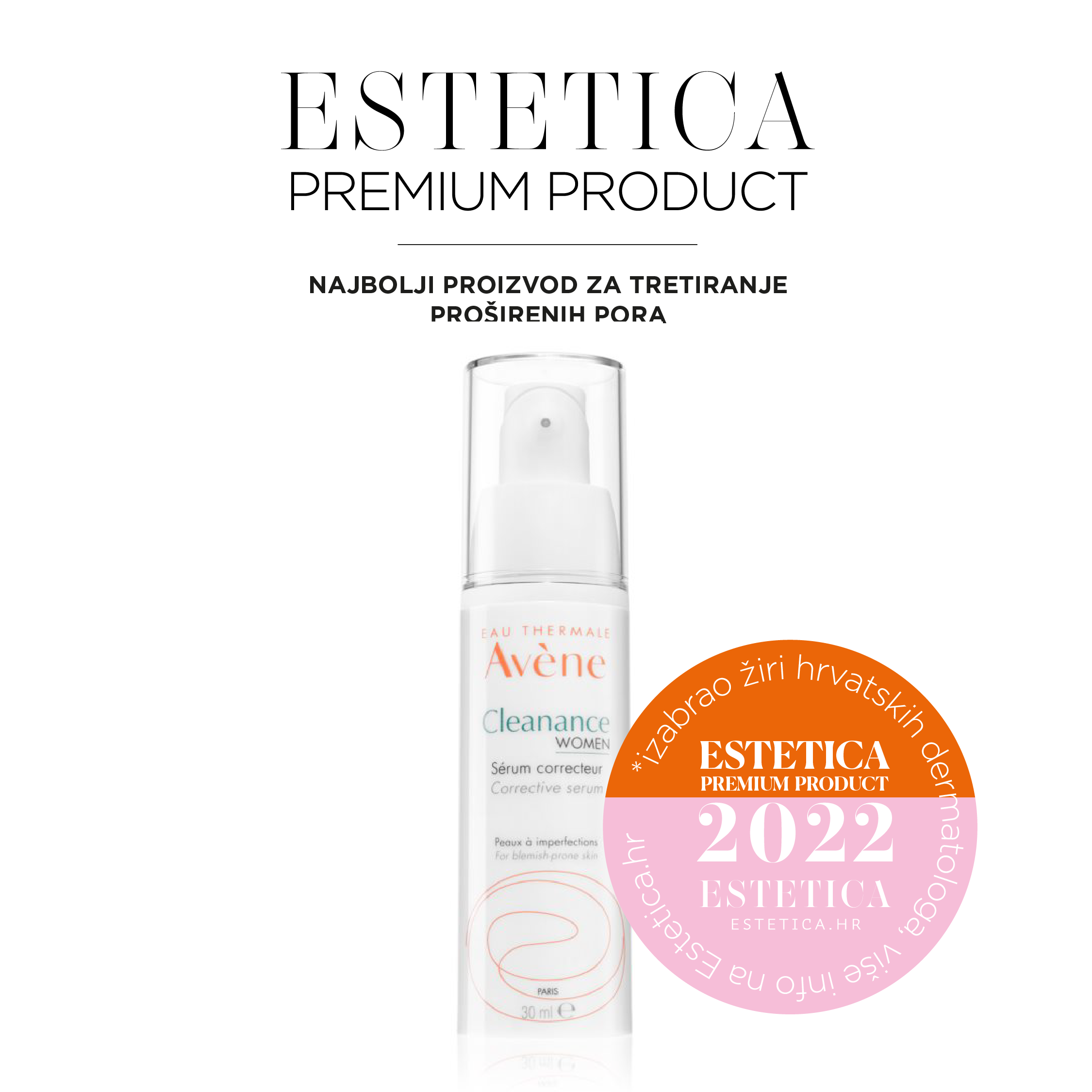 Ključni dio strategije, tvrde dermatolozi, je kreiranje svakodnevne rutine njege koja će ciljano djelovati na nekoliko problema – rastapanje viška sebuma iz pora te preventivni učinak na upalne procese i prištiće. Sve to specijalnost je jednog proizvoda – Eau Thermale Avène Cleanance Women, korektivnog seruma koji je odnio pobjedu u kategoriji Najbolji proizvod za tretiranje proširenih pora na Estetica Premium Product 2022.