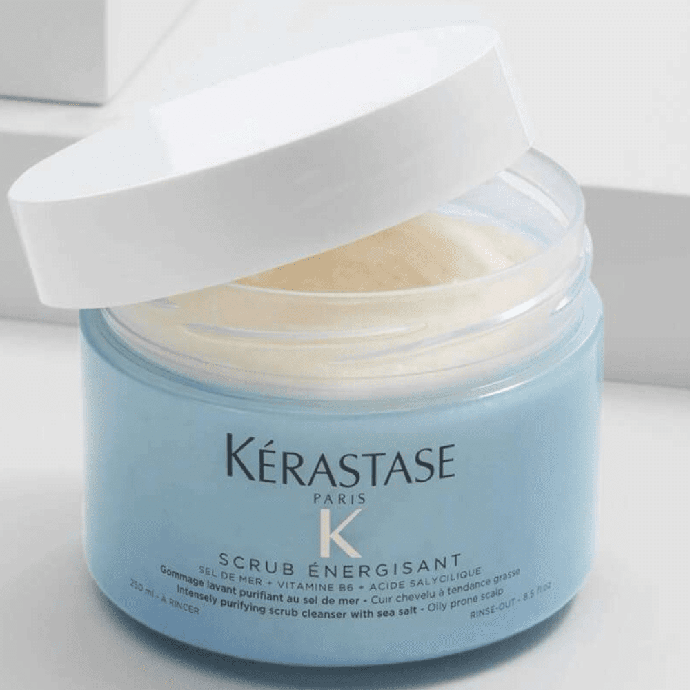 Kérastase piling s kristalima morske soli stimulira obnovu vlasišta i opušta pore, uklanjajući do 3 puta više nagomilanih nečistoća u usporedbi s običnim šamponom. Morska sol iz Francuske čisti i detoksificira vlasište, vitamin B6 jača kosu, potiče njezin rast, a salicilna kiselina eksfolira vlasište.