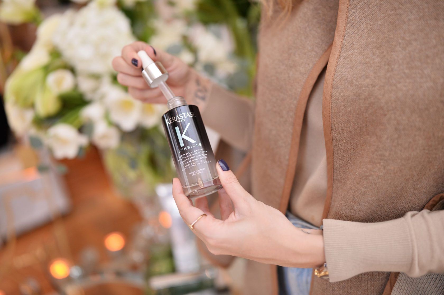 “U liniji se nalaze proizvodi koji djeluju komplementarno kako bi regulirali ravnotežu vlasišta, napravili potrebnu eksfolijaciju te istovremeno hidratizirali osjetljivo i iritirano vlasište. Kérastase Symbiose Micro-Peeling Cellulaire detoksikacijski je tretman s mikropilingom za osjetljivo vlasište, Kérastase Symbiose Bain Pureté Anti-Pelliculaire šampon pročišćava osjetljivo masno vlasište, dok Kérastase Symbiose Bain Crème Anti-Pelliculaire šampon uspostavlja ravnotežu vlažnosti suhog, osjetljivog i perutavog vlasišta. Naravno, za dublju njegu u liniji se nalazi i Kérastase Symbiose Fondant Apaisant Essentiel, regenerator koji jača prirodnu zaštitnu barijeru vlasišta i pruža potrebnu hidrataciju te revitalizirajuća maska Kérastase Symbiose Masque Revitalisant Essentiel. Naposljetku, tu je Kérastase Symbiose Sérum Cellulaire Nuit Anti-Pelliculaire Intensif, serum za osjetljivo vlasište koji jača prirodnu barijeru kože i štiti mikrobiom vlasišta”, istaknula je Ana Androšević.