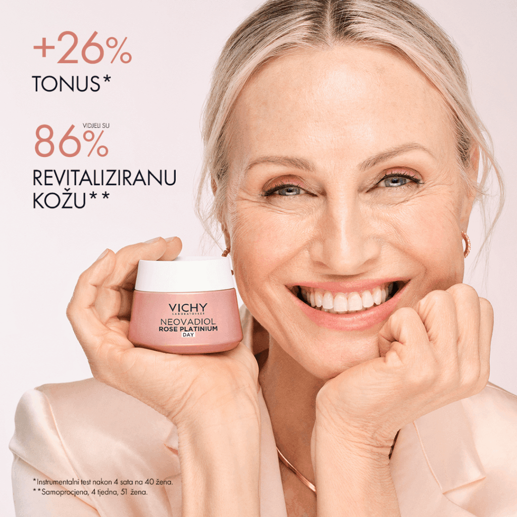 Nakon 65. godine starosti koža postaje tanja i krhka, dolazi do ubrzanog opuštanja kože te ona gubi svoju vitalnost, mladenačku čvrstoću i sjaj. Kako bi pomogao ženama poboljšati vitalnost, čvrstoću i sjaj kože, među proizvodima za njegu zrele kože i kože u menopauzi, Vichy Laboratoires je ove godine predstavio Rose Platinium, liniju posvećenu ženama zrele dobi koje prepoznaju da šezdesete godine života donose neki novi sjaj.