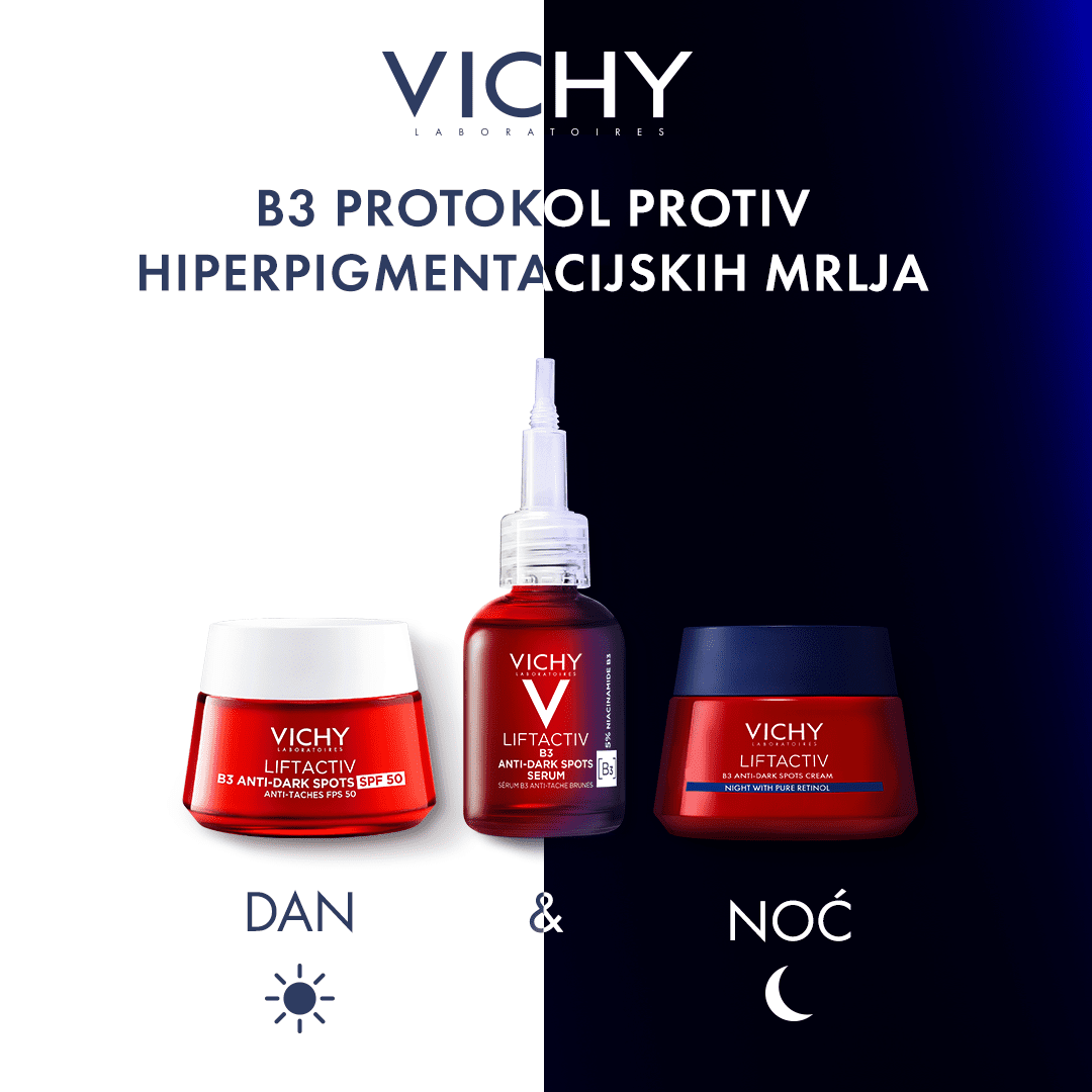 Brend Vichy preporučuje više od 70.000 dermatologa, a proizvode iz Vichyjeve Liftactiv B3 linije potražite u obližnjim ljekarnama.