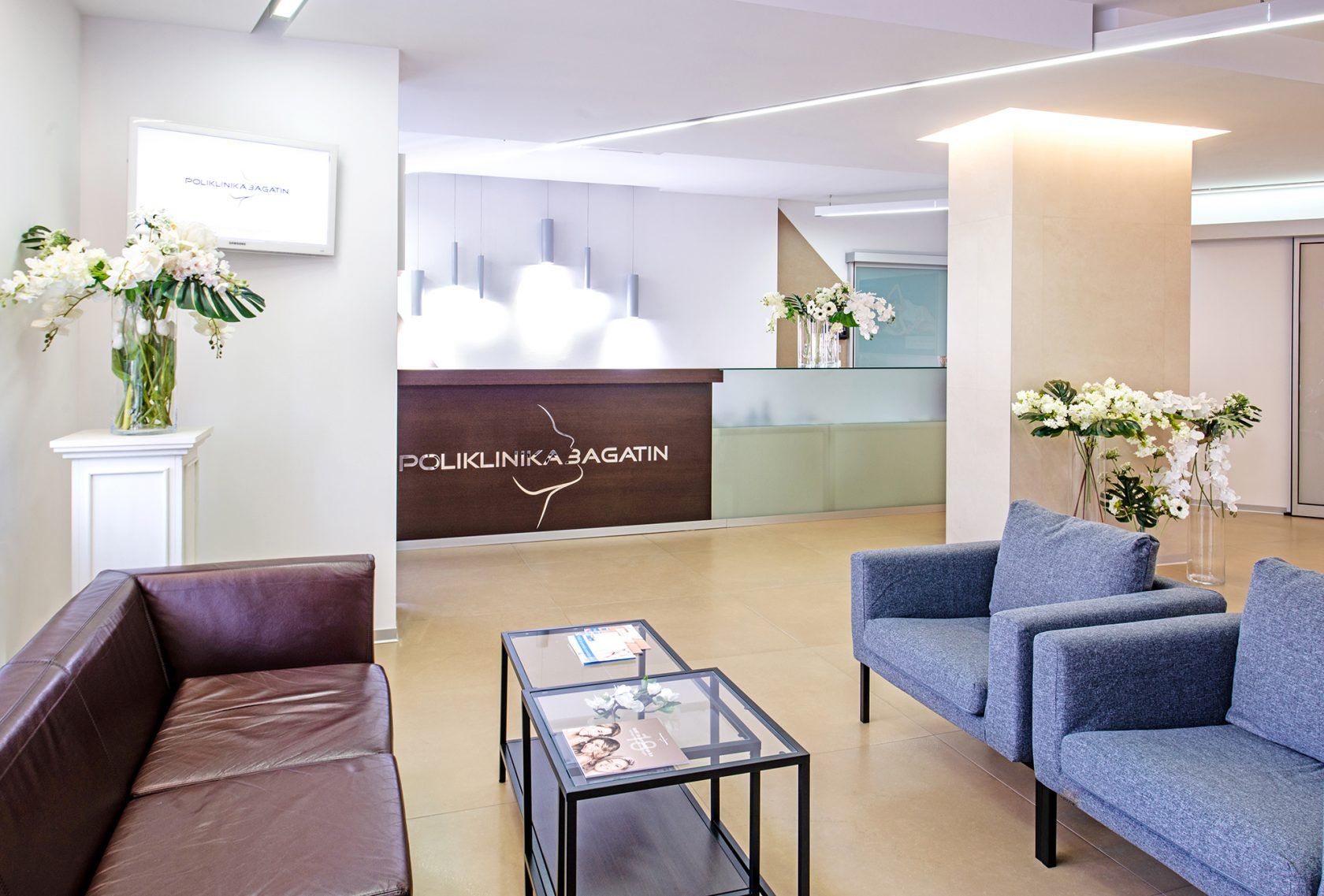 Na prvom katu, na velikih 500 kvadrata gdje se Poliklinika smjestila, već na samom ulazu dočekala ih je idealna scenografija za druženje i nezaboravne fotografije. Tajming je bio idealan, zadnja klijentica je upravo bila na odlasku tako da su doktore Dinka Bagatina, čija je specijalnost opća i plastična kirurgija te doktora Tomicu Bagatin, plastičnog kirurga glave i vrata, iznenadili u njihovim ordinacijama kada je neformalno druženje moglo i započeti! Što poželjeti, čemu nazdraviti?