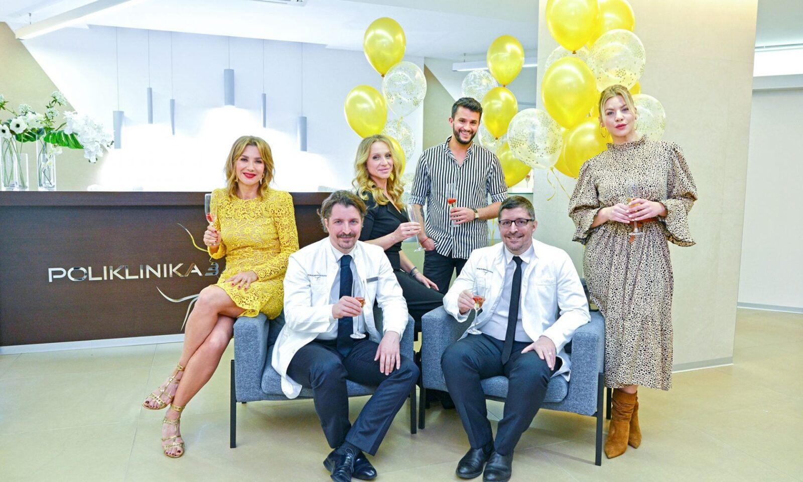 Na prvom katu, na velikih 500 kvadrata gdje se Poliklinika smjestila, već na samom ulazu dočekala ih je idealna scenografija za druženje i nezaboravne fotografije. Tajming je bio idealan, zadnja klijentica je upravo bila na odlasku tako da su doktore Dinka Bagatina, čija je specijalnost opća i plastična kirurgija te doktora Tomicu Bagatin, plastičnog kirurga glave i vrata, iznenadili u njihovim ordinacijama kada je neformalno druženje moglo i započeti! Što poželjeti, čemu nazdraviti?