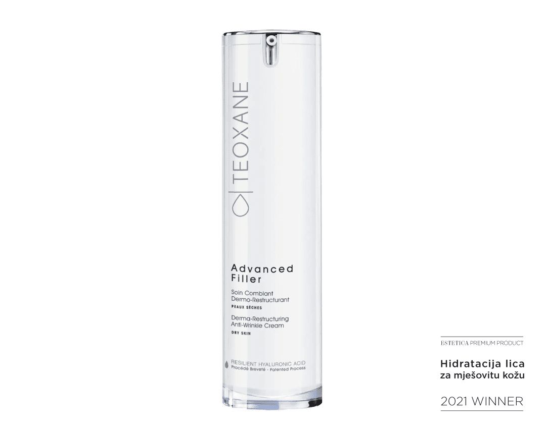 Drugi pobjednik je Teoxane Advanced Filler koji prilikom aplikacije, stvara mrežu hijaluronske kiseline koja ima jedinstveno djelovanje: zaglađuje i učvršćuje kožu, povećava volumen te stimulira proliferaciju stanica.