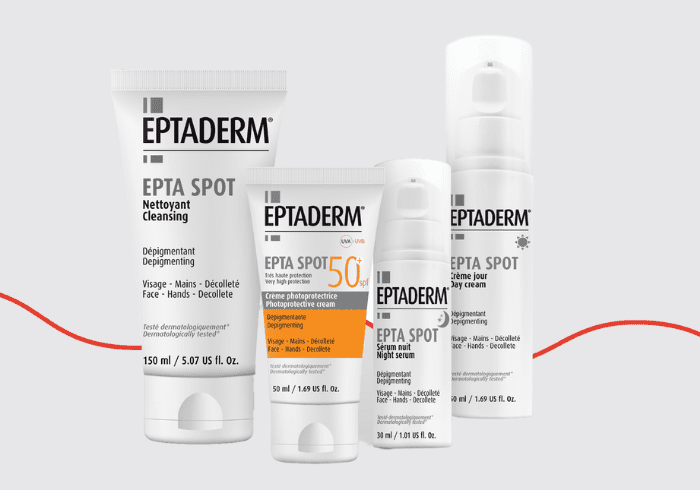 Tvrdnja da hiperpigmentacije pogađaju samo starije osobe je mit. Smeđe mrljice na koži javljaju se u oba spola, i to u različitim dobnim skupinama, kao i iz raznih razloga. Upravo zato, Eptaderm je kreirao liniju od četiri proizvoda – EPTA SPOT dnevna krema, EPTA SPOT gel za čišćenje, EPTA SPOT SFP 50 krema za zaštitu od sunca i EPTA SPOT noćni serum – pogodnu svim uzrastima koja pruža sveobuhvatnu i cjelodnevnu pomoć pri borbi s hiperpigmentacijama svake vrste. Mogu se koristiti i kao podrška liječničkim tretmanima kože poput pilinga i lasera.
