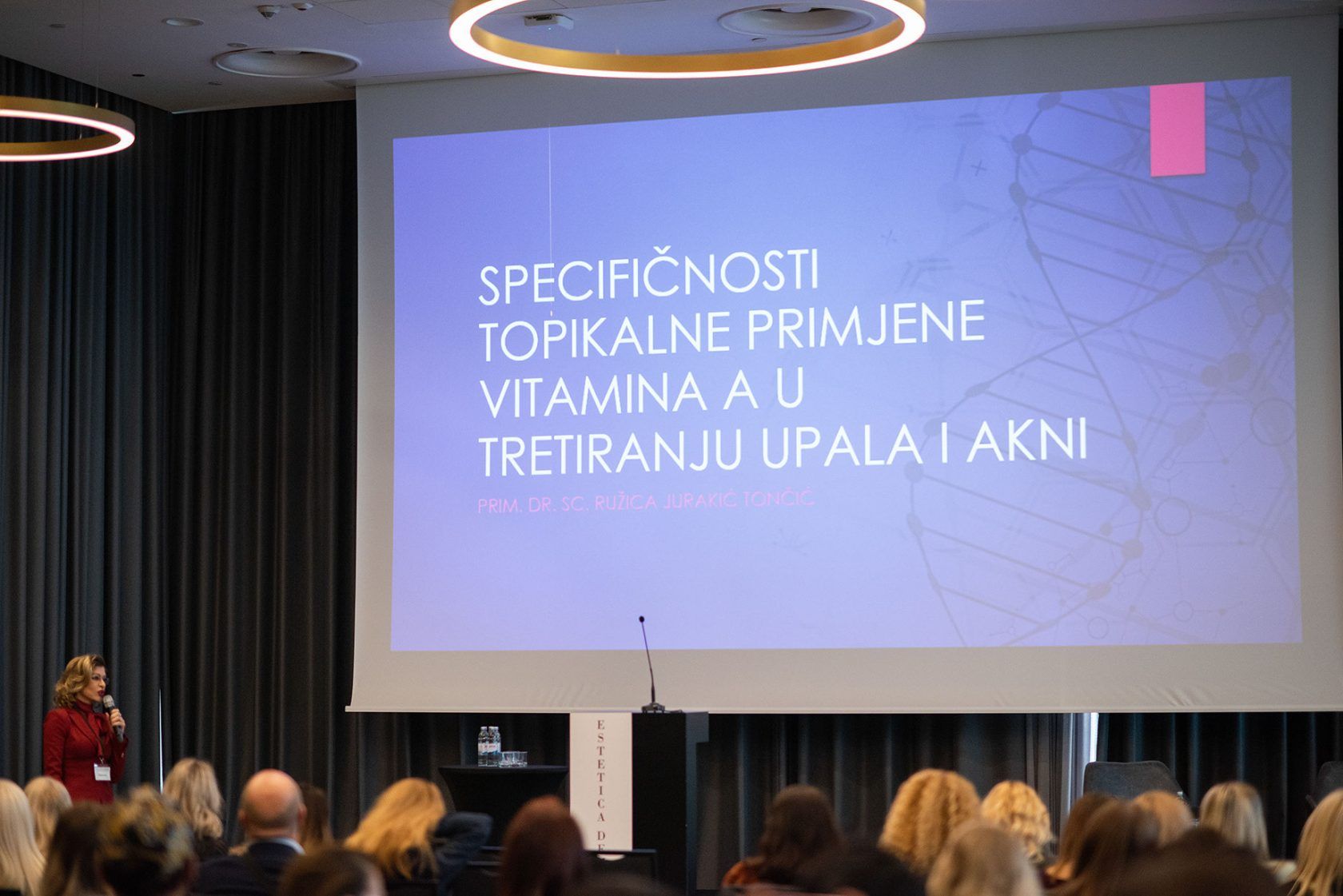 Kao početak tematske cjeline o retinolu, uslijedilo je predavanje dermatologinje PRIM. DR. SC. RUŽICE JURAKIĆ TONČIĆ: SPECIFIČNOSTI TOPIKALNE PRIMJENE VITAMINA A U TRETIRANJU UPALA I AKNI .