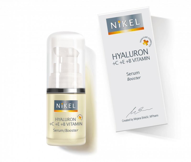 Izvanredna kombinacije sastojaka nalazi se u Nikel Hyaluron+C+E+B vitamin Serum boosteru, a činjenica da je riječ o hrvatskom proizvodu koji na međunarodnom tržištu niže nagrade još nas više raduje. Kombinacija hijalurona, vitamina i biljnih ceramida u obliku tekućih kristala u ovom inovativnom serumu osigurava antioksidativnu fotozaštitu, intenzivnu hidrataciju i izglađivanje bora u jednom koraku. Riječ je o intenzivnom revitalizirajućem serumu za sve tipove kože koji se može nanositi kao podloga na čitavo lice ispod omiljene kreme, ili ciljano na bore koje želite popuniti i zagladiti.