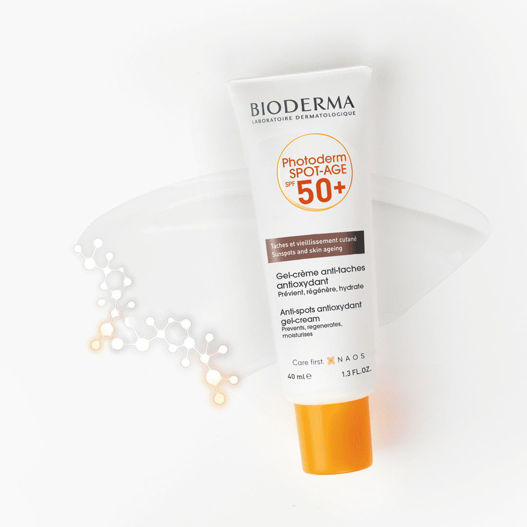 Photoderm SPOT-AGE SPF 50+ gel-krema ublažava pjegice, mrlje i znakove fotostarenja kože te sprječava njihov nastanak, a ujedno sadržava vrlo visoki faktor UVA i UVB zaštite. U čemu leži tajna njezine formule? Bioderma kombinira snagu tri dermatološki prepoznata aktivna sastojka s UV filtrima kako bi se postigao široki spektar zaštite (od ultraljubičastih i infracrvenih zraka te vidljivog zračenja). Na taj je način kreirana učinkovita njega koja sprječava i smanjuje znakove fotostarenja (pjege, bore, gubitak čvrstoće). Jedinstveni Cellular Bioprotection™ patent potiče prirodne obrambene mehanizme kože štiteći je tako od štetnih utjecaja sunca.