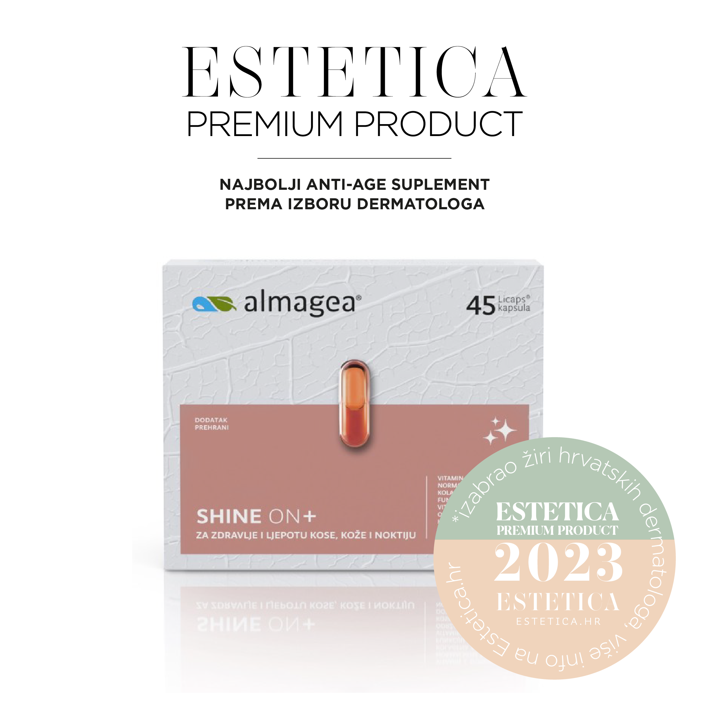 U okviru ovogodišnjeg izdanja natječaja Estetica Premium Product, dermatolozi su najboljim anti-age suplementom proglasili Almagea® Shine On+.