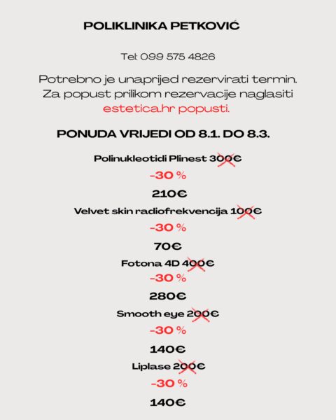 U sklopu projekta Estetica My Moments, Poliklinika Petković omogućila vam je sjajan popust na vrhunski tretman biostimulacije kože poliunkleotidima Plinest. Ponuda vrijedi do 8.3.