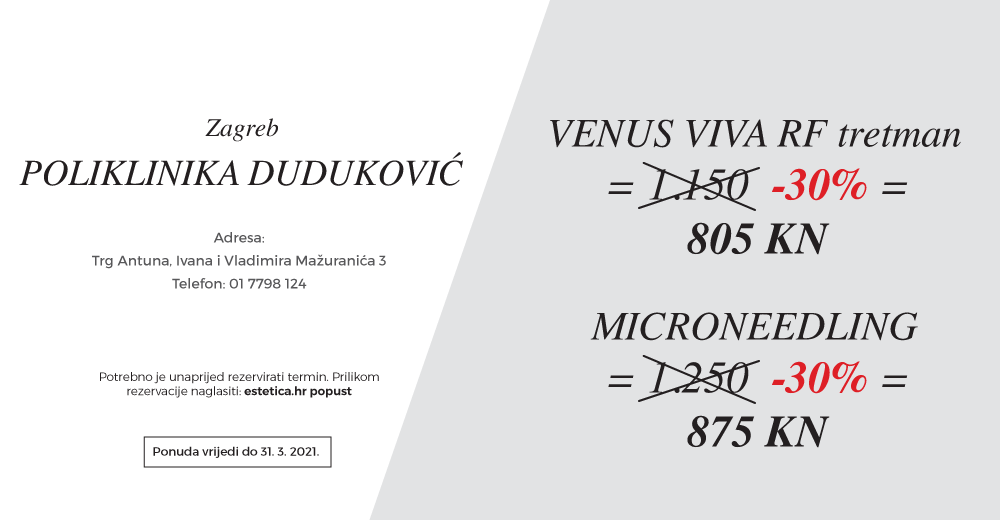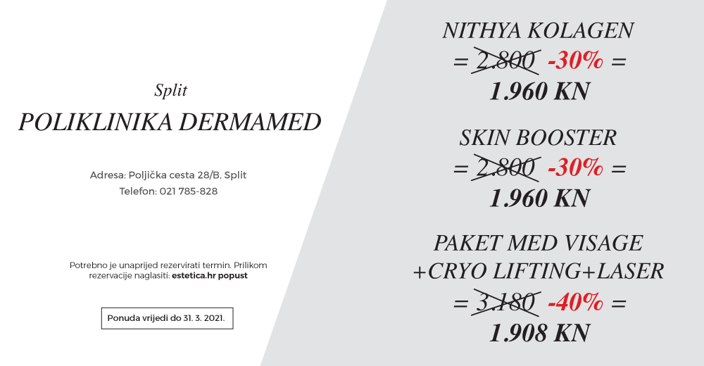 Ako je ikad postojao idealni trenutak da se podvrgnete tretmanu ili zahvatu o kojem maštate već godinama – taj je trenutak stigao sada. Osim što nam manjak socijalnih kontakata ostavlja mnogo više vremena za oporavak od operativnih zahvata, a činjenica da se šminkamo rjeđe no ikad ostavlja prostora da poradite na kvaliteti i mladolikosti kože, donosimo vam još jedan razlog – cijene kakve do sada niste imali prilike pronaći u domaćim poliklinikama.