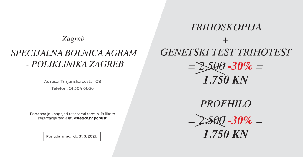 Dr. Saida Rezaković iz zagrebačke Specijalne bolnice AGRAM iskusna je dermatologinja s dugogodišnjim iskustvom u području dijagnostike i liječenja bolesti vlasišta, a uz izvrstan popust kompletnu dijagnostiku liječenja s genetskim testom možete napraviti po cijeni od samo 1.750 kuna.