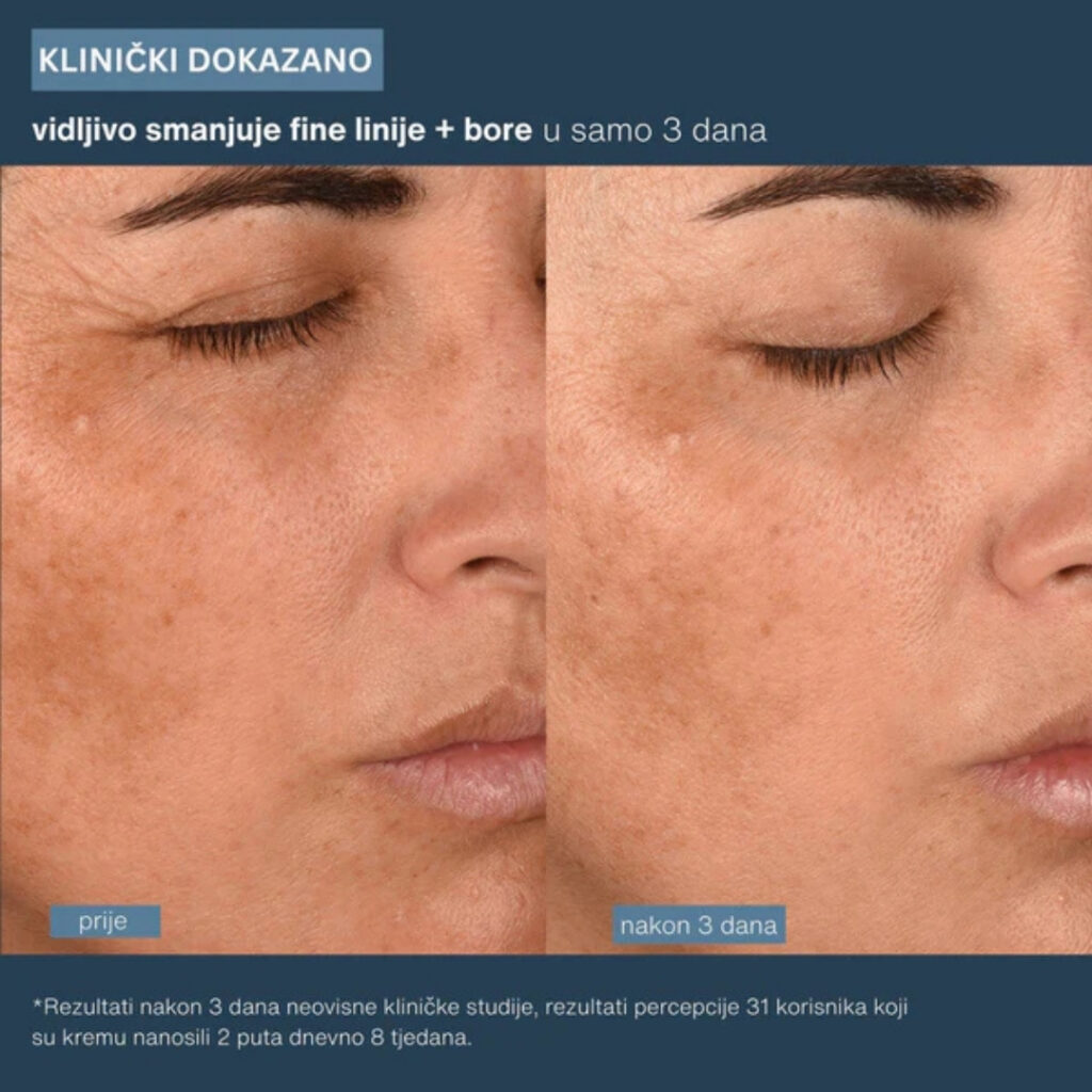U središtu formule je peptidni kompleks s aminokiselinama kolagena, cink glicinatom, karnozin dipeptidom i esterom jojobe, kombinacija koja pomaže u borbi protiv oksidativnog stresa i podržava očuvanje kolagena, a pritom štiti elastinska vlakna. Dodane su ekstremofilne crvene alge koje podupiru proizvodnju hijalurona i kolagena tipa I te pomažu da koža izgleda zaglađenije, kao i ekstrakt bijele djeteline koji cilja elastičnost i daje efekt mikroliftinga. Mineralima bogata morska voda i multipeptidi donose dubinsku hidrataciju, dok biofermentirani ekstrakt korijena rotkvice pomaže jačanju barijere – ključnom dijelu priče kad želite da koža dugoročno izgleda stabilno i “mirno”.