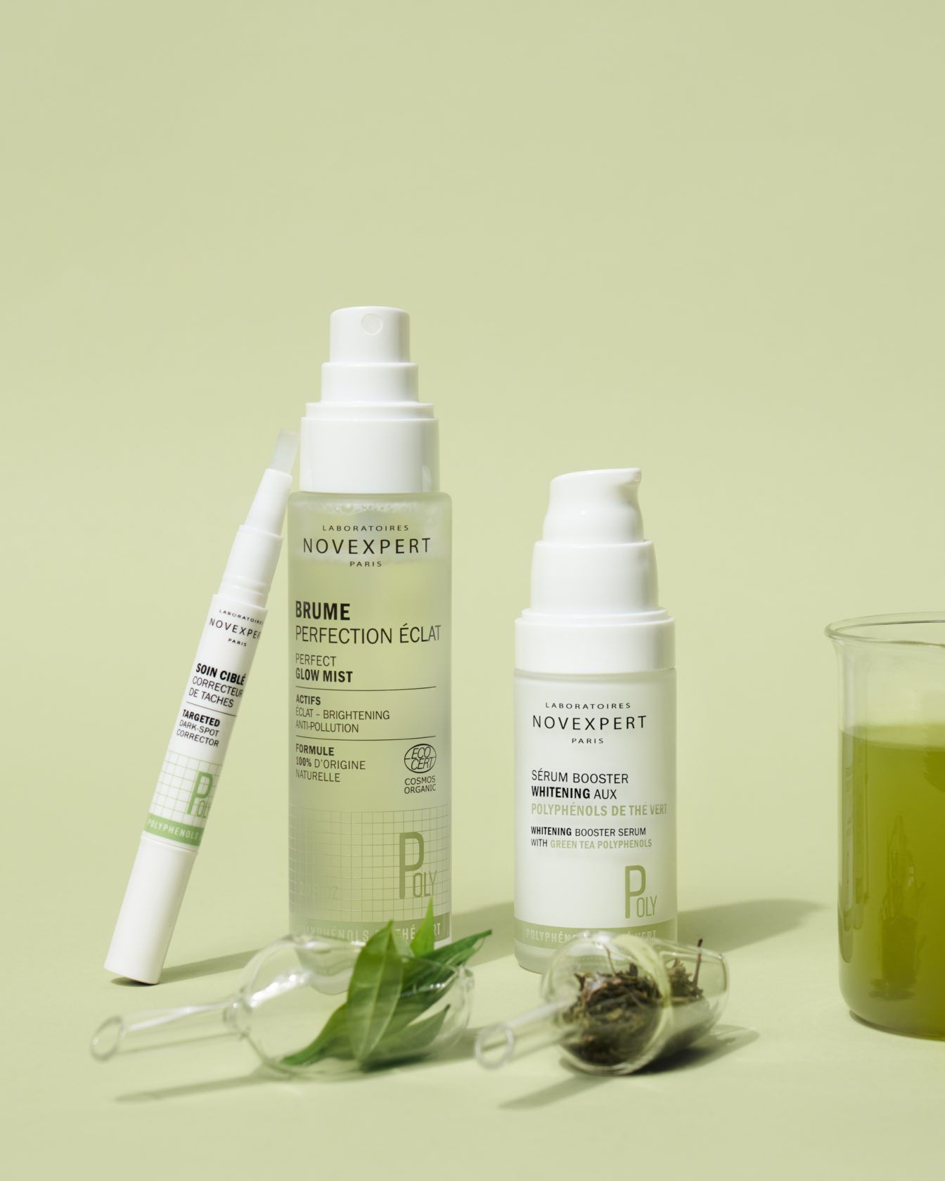 Čitava je Linija s Polifenolima iz zelenog čaja formulirana kako bi ciljano tretirala hiperpigmentacije kože – istovremeno smanjujući postojeće mrlje i prevenirajući nastanak budućih. Vodeći se principima tolerancije na osjetljivoj koži i targetiranja specifičnih zahtjeva kože sklone mrljama, proizvodi ove linije imaju 3 cilja – lokalno smanjiti hiperpigmentacije, ublažiti znakove starenja na koži te vratiti tenu blistavost i ujednačen izgled.