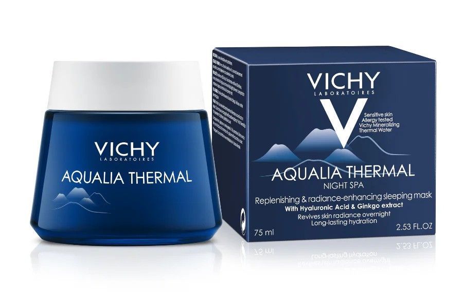 Ova noćna njega intenzivno hidratizira dehidriranu kožu, vraća joj vlagu s pomoću hijaluronske kiseline te ju umiruje termalnom vodom bogatom mineralima. Potiče prirodnu obnovu kože, čineći je svježom, blistavom i punom.