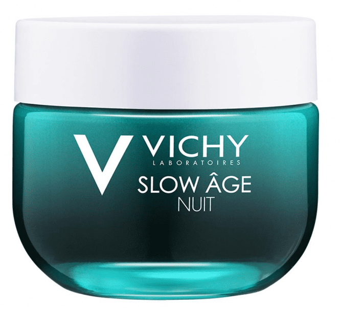 Vichy Slow Âge noćna krema i maska prva je Vichy noćna njega i maska koja kožu obogaćuje kisikom i obnavlja je uslijed negativnih utjecaja iz okoline. Poboljšava stanično disanje i regeneraciju kože iz noći u noć. Nakon buđenja koža je u potpunosti hidratizirana i blistava, a bore su zaglađene. Ublažava postojeće znakove starenja – bore, nedostatak sjaja, tamne mrlje i gubitak elastičnosti – te hidratizira i zaglađuje kožu čineći je ujednačenijom i blistavijom.
