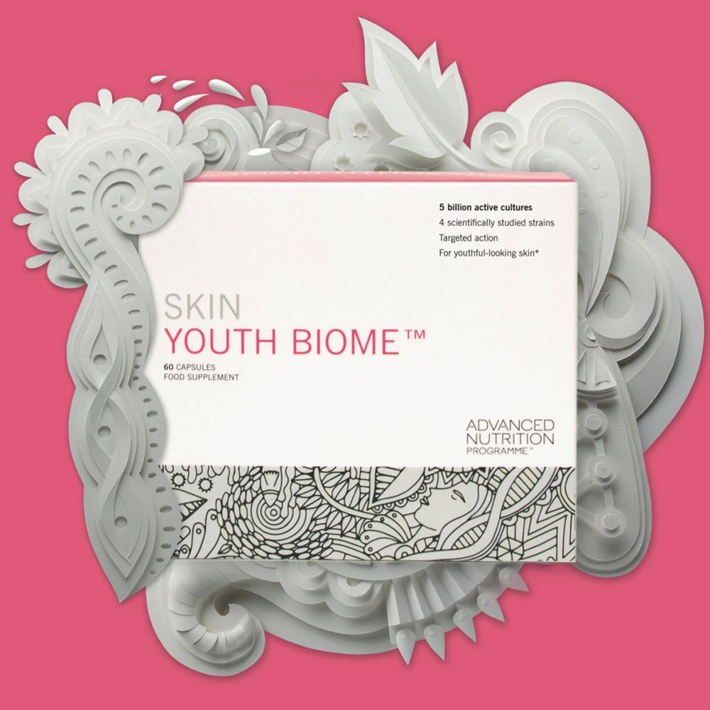 Kapsule Skin Youth Biome laboratorija Advanced Nutrition Programme sadrže prirodni probiotik namijenjen zdravom i blistavom tenu. Posebna kombinacija temeljito ispitanih sojeva probiotika kombiniranih s vitaminom C smanjit će upale, potaknuti antioksidacijsko djelovanje i stvaranje kolagena te ubrzati obnavljanje kože.
